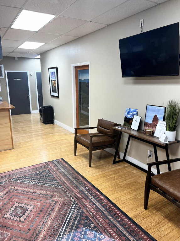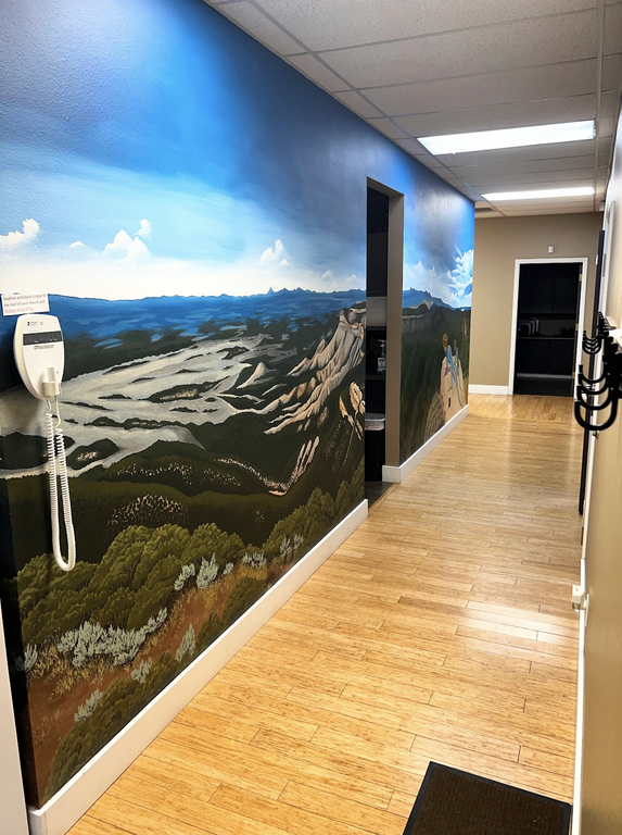 Welcome to our office tour! Our modern and comfortable office features digital check-in kiosks and TVs in every treatment room for your convenience. We also offer cold drinks as you enjoy the lovely mural of the valley painted on our reception wall. We invite you to look through the Cortez Dental office tour photos and call us at 970-565-9569 to learn more about our services for dental care in Cortez, Colorado, and schedule a visit with our dentist, Dr. Kevin Schade.